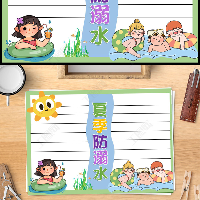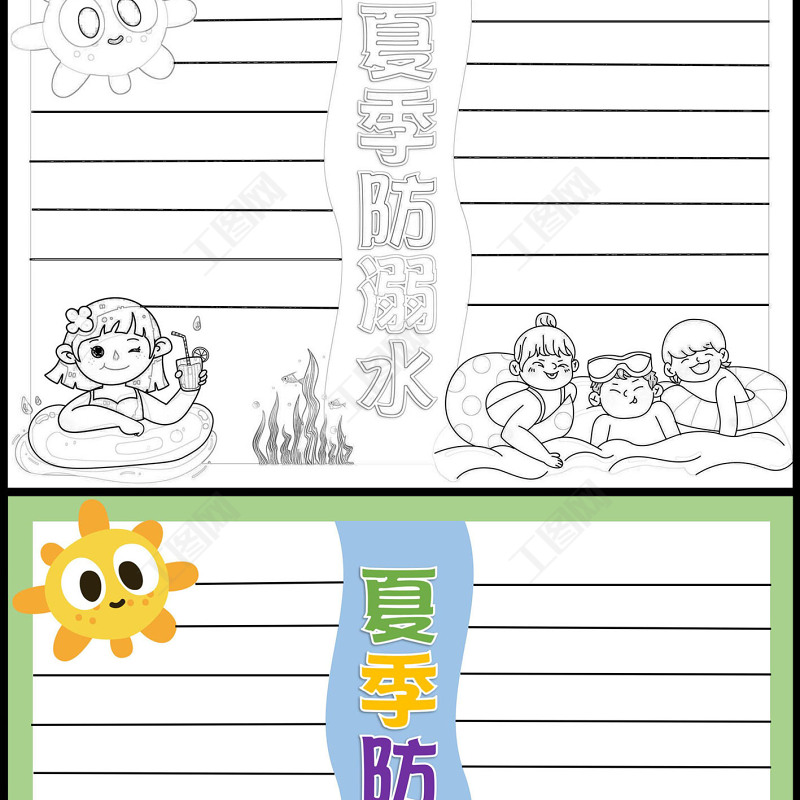 2021夏季防溺水手抄報安全夏季防溺水卡通風(fēng)格小報模板包含