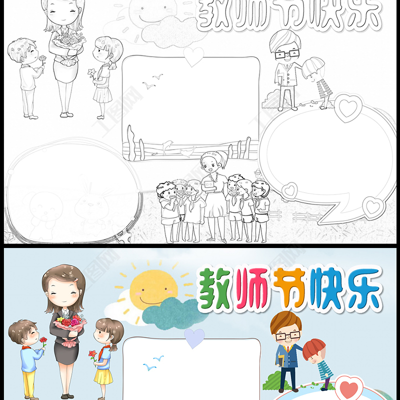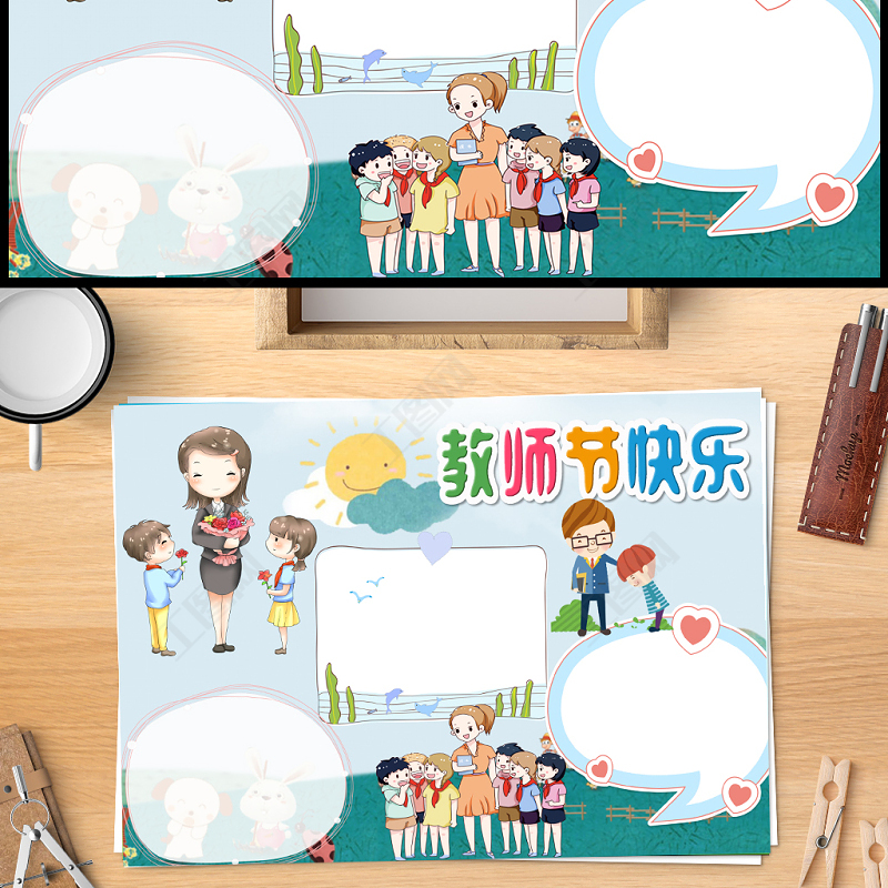 2021教師節(jié)快樂手抄報(bào)藍(lán)色清新卡通風(fēng)格教師節(jié)小報(bào)手抄報(bào)word模板包含