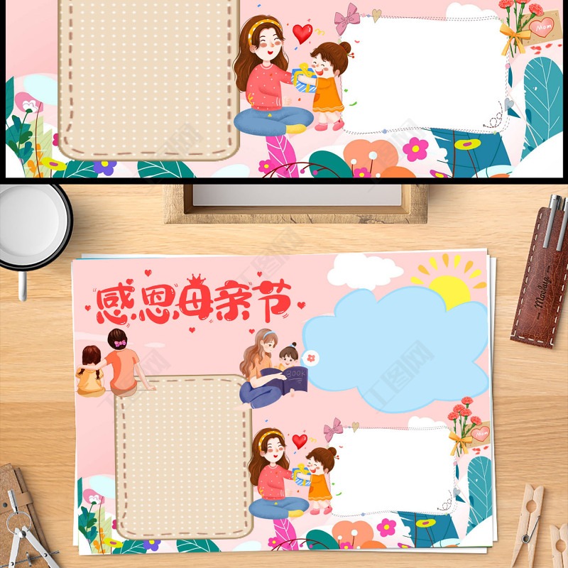 母親節(jié)快樂(lè)可愛(ài)卡通感恩母親節(jié)小報(bào)模板下載 Array