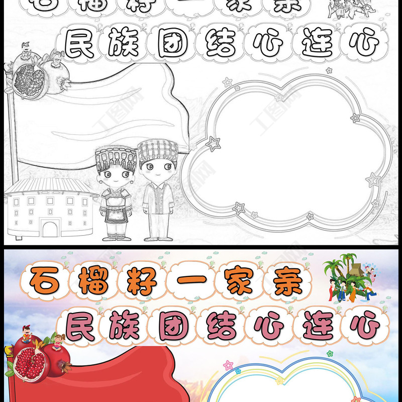 工圖網(wǎng)提供石榴籽一家親民族團(tuán)結(jié)心連心手抄報(bào)民族插畫(huà)風(fēng)民族團(tuán)結(jié)的重要意義小報(bào)模板下載供會(huì)員免費(fèi)下載。更多精彩黨課PPT素材,盡在工圖網(wǎng)。