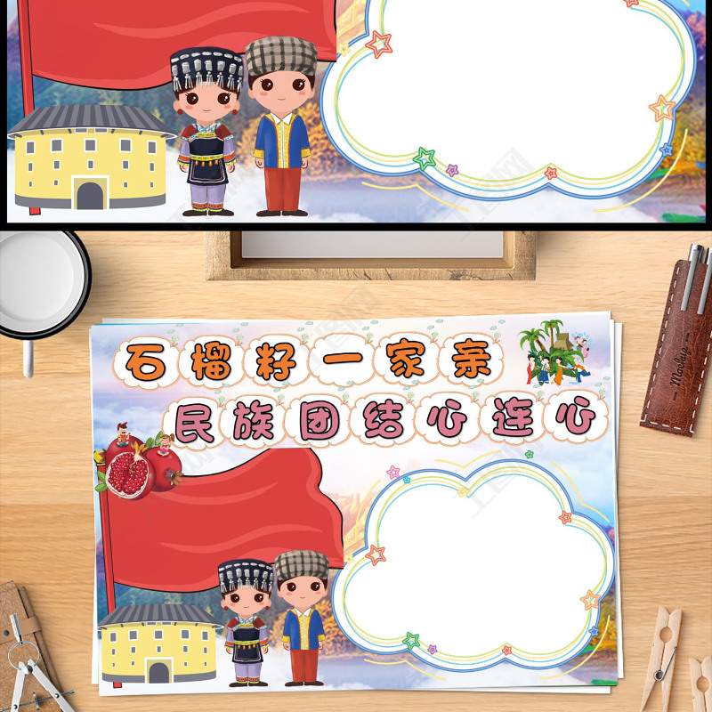 石榴籽一家親民族團(tuán)結(jié)心連心手抄報(bào)民族插畫(huà)風(fēng)民族團(tuán)結(jié)的重要意義小報(bào)模板下載