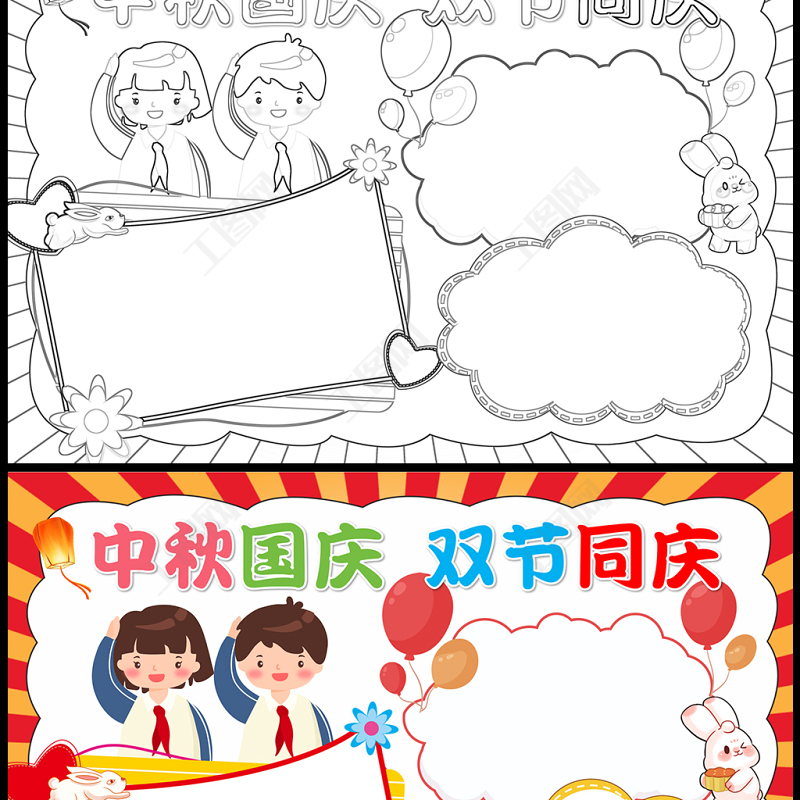 2021年中秋國慶雙節(jié)同慶小報手抄報模板包含