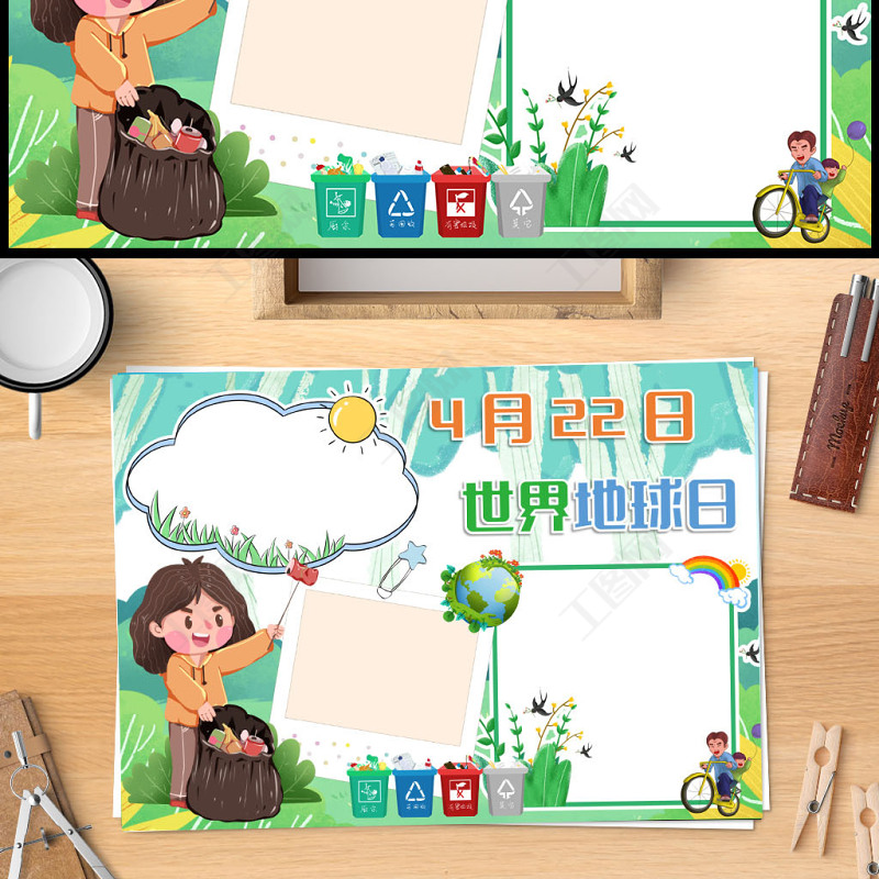 2023世界地球日手抄報(bào)童趣卡通風(fēng)4月22日世界地球日保護(hù)環(huán)境人人有責(zé)電子小報(bào)模板 Array