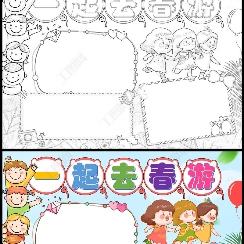 2023一起去春游手抄報(bào)童趣可愛小清新春天春季一起踏青郊游春游電子小報(bào)模板 Array