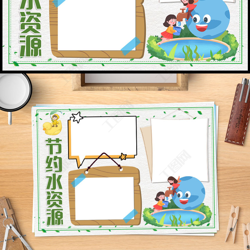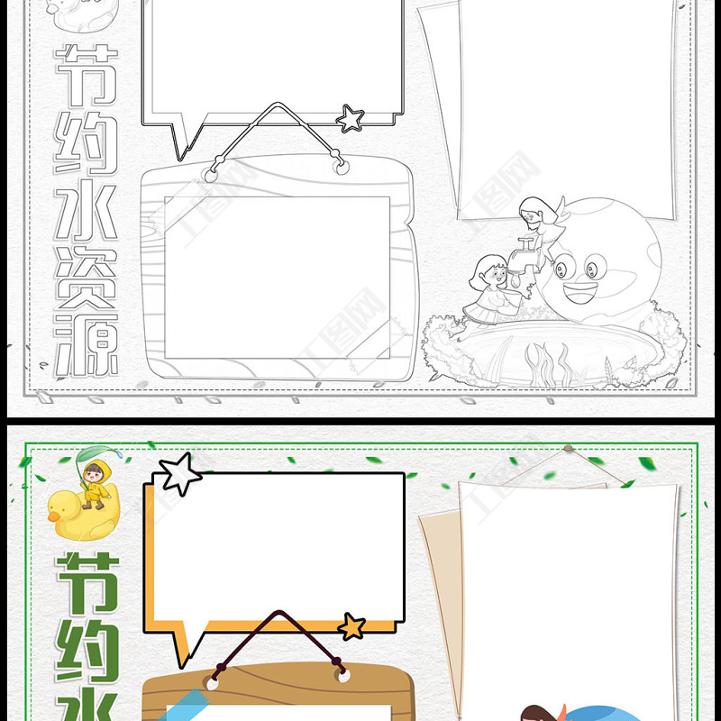2023節(jié)約水資源手抄報(bào)卡通創(chuàng)意節(jié)約用水從我做起電子小報(bào)模板