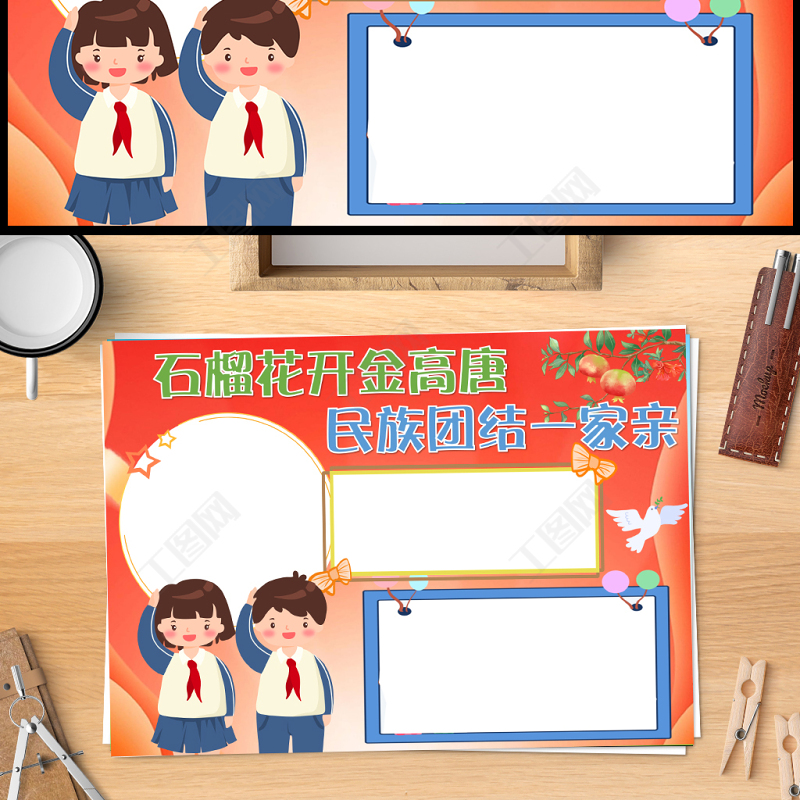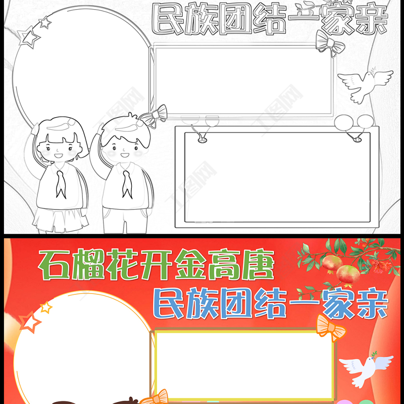 2023石榴花開金高唐民族團結一家親手抄報兒童風可愛傳遞分享夢想的力量word電子小報模板 Array
