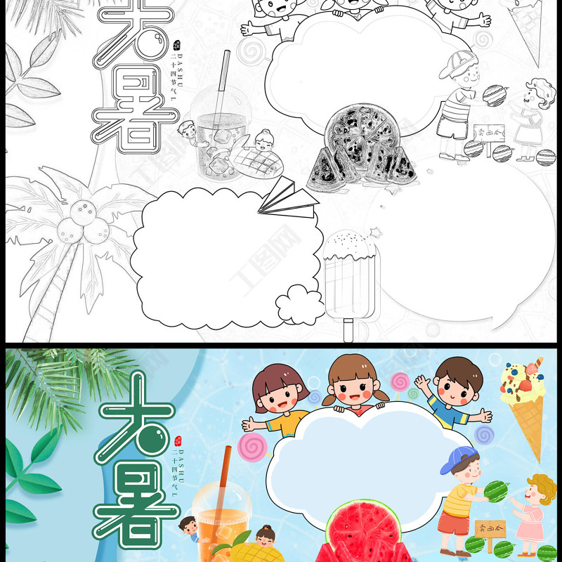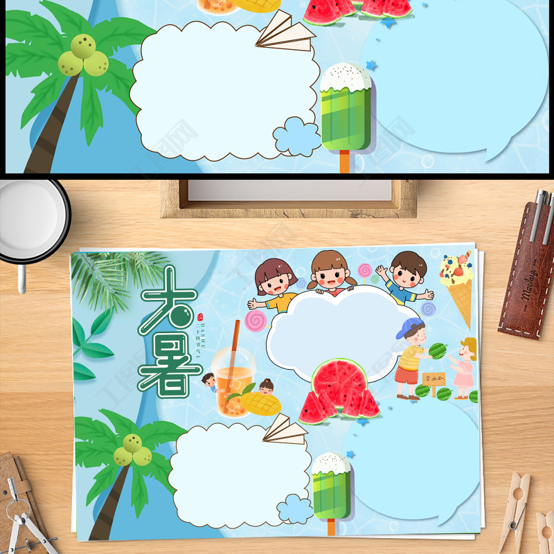 2022大暑手抄報綠色夏日清涼節(jié)氣小報模板下載 Array