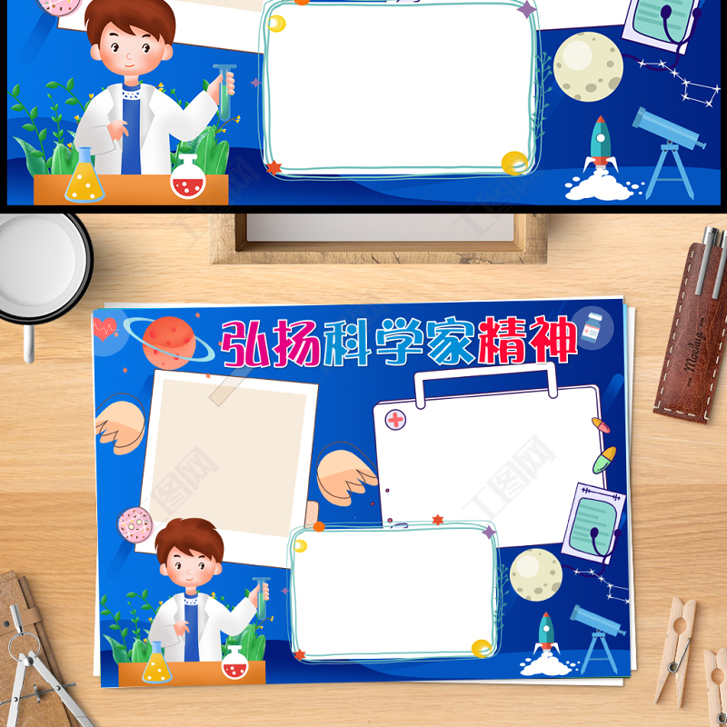 2023弘揚(yáng)科學(xué)家精神手抄報(bào)卡通風(fēng)創(chuàng)意word電子小報(bào)模板 Array