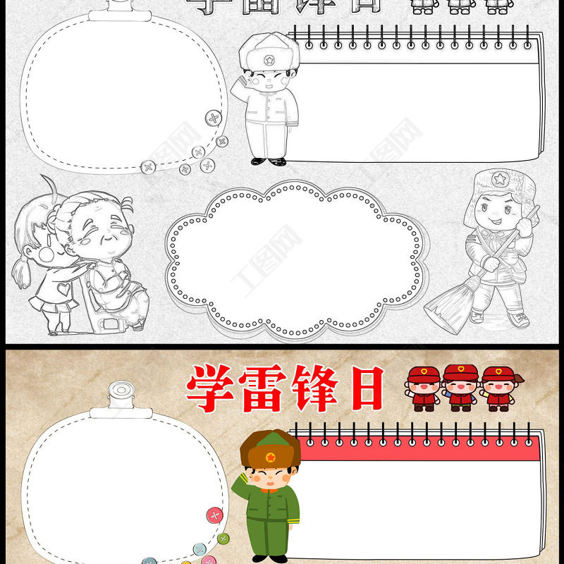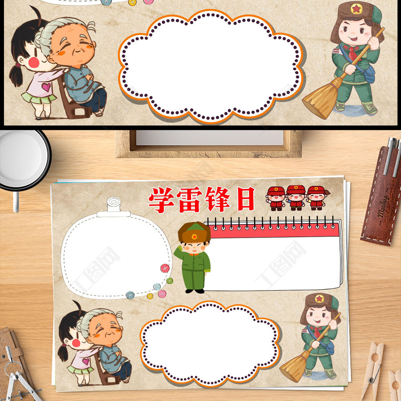 2023學(xué)雷鋒日手抄報(bào)復(fù)古卡通三月五日學(xué)習(xí)雷鋒紀(jì)念日電子小報(bào)模板
