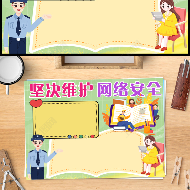 2023堅決維護網(wǎng)絡(luò)安全手抄報卡通插畫風文明上網(wǎng)安全上網(wǎng)word電子小報模板