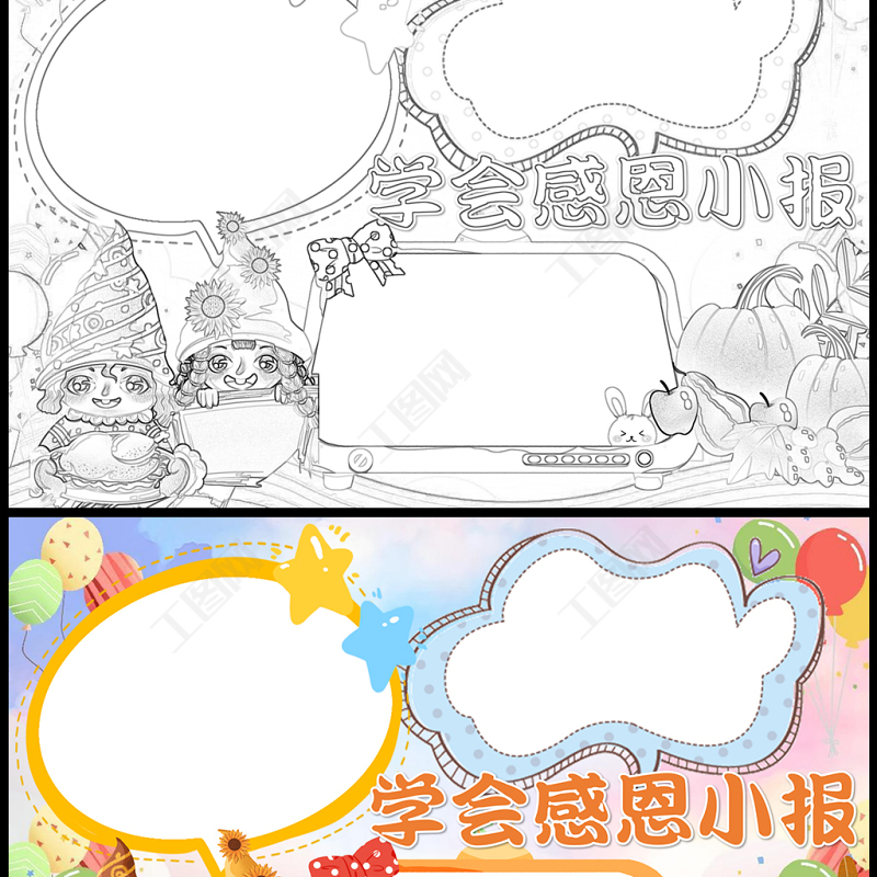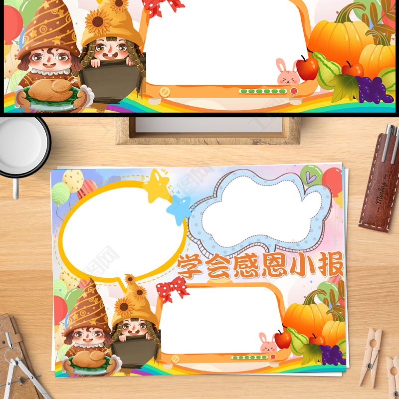 2023感恩節(jié)快樂手抄報彩色童趣學(xué)會感恩word電子小報模板 Array