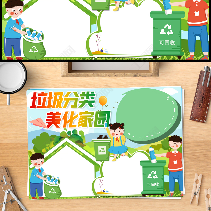 2023垃圾分類美化家園手抄報(bào)彩色插畫風(fēng)保護(hù)環(huán)境人人有責(zé)電子小報(bào)模板