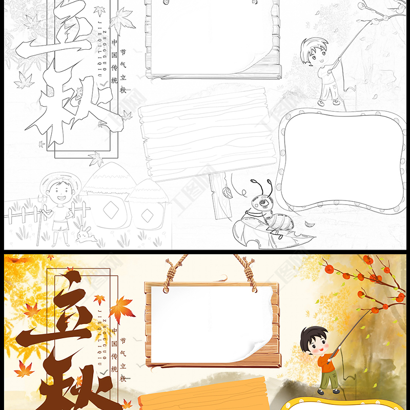 2021立秋傳統(tǒng)節(jié)氣手抄報(bào)卡通風(fēng)格中國傳統(tǒng)節(jié)氣立秋時(shí)節(jié)小報(bào)模板