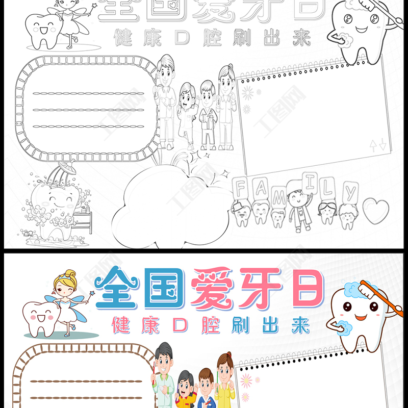 2021全國愛牙日手抄報卡通風格中小學生愛牙日小報模板下載包含
