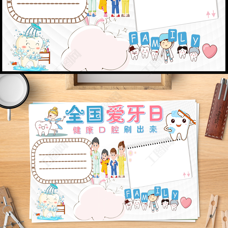 2021 全國愛牙日 手抄報 卡通風格 中小學生 愛牙日 小報模板 下載 Array