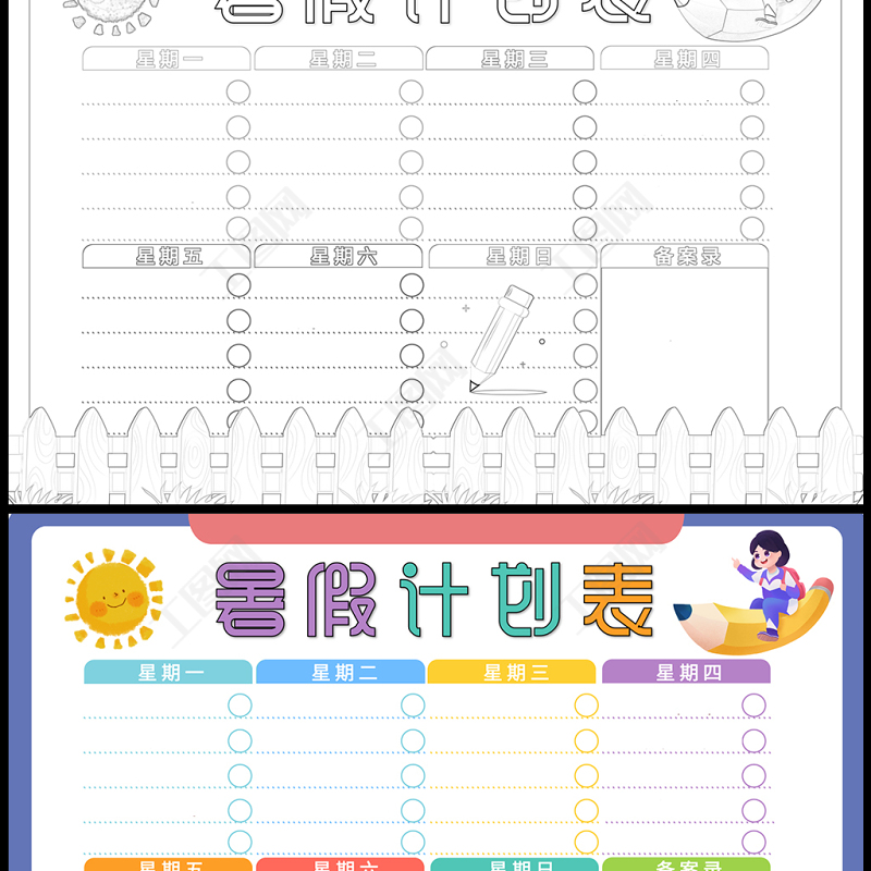 2023暑假計劃表手抄報簡約創(chuàng)意暑假時間計劃表電子小報模板 Array