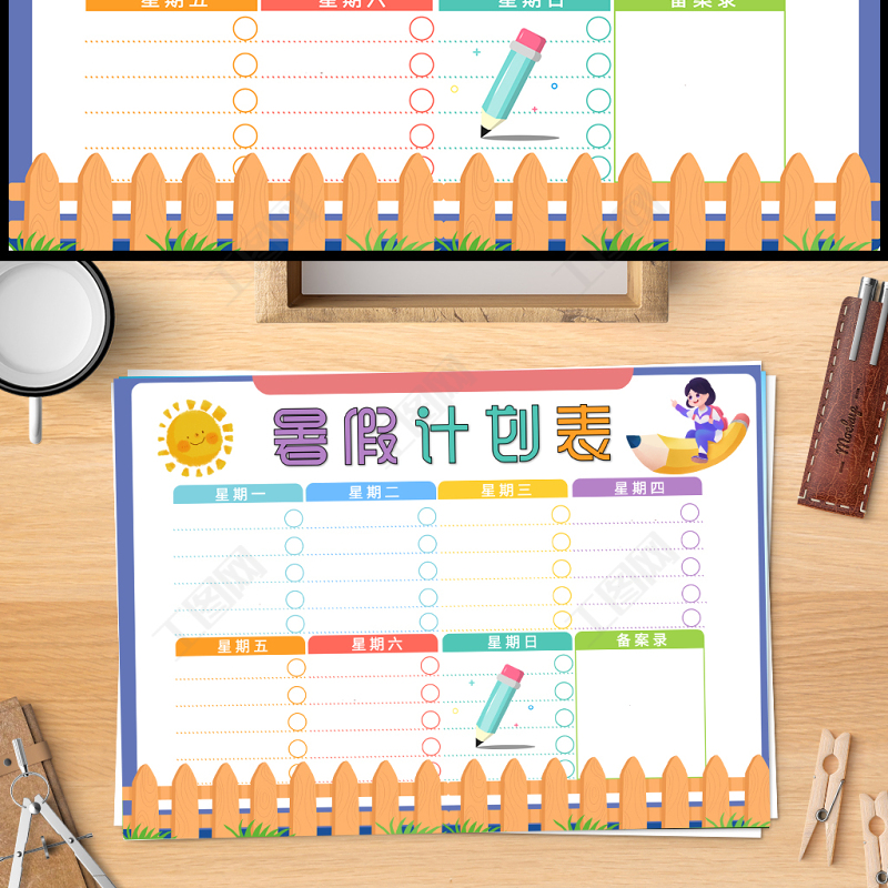 2023暑假計劃表手抄報簡約創(chuàng)意暑假時間計劃表電子小報模板