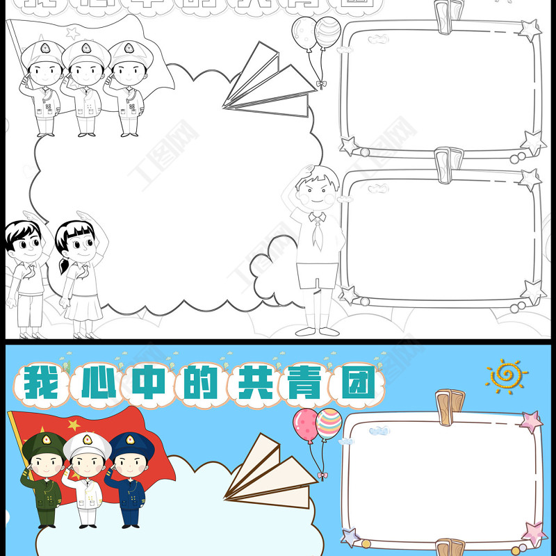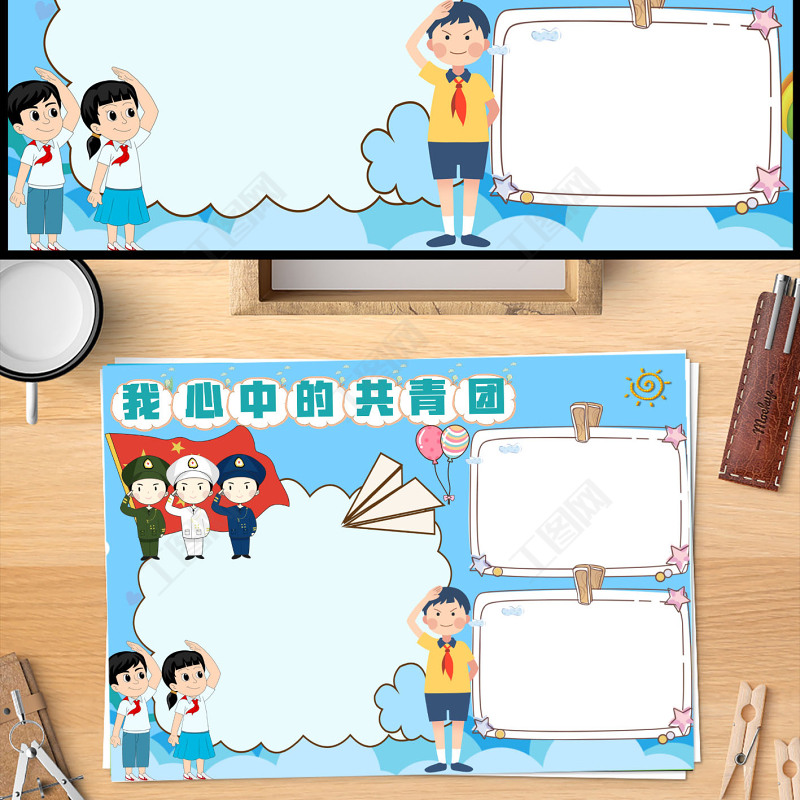 我心中的共青團藍色卡通內(nèi)容小報模板下載 Array