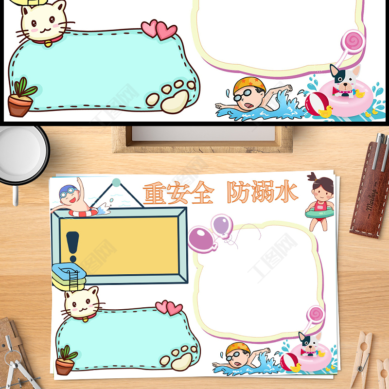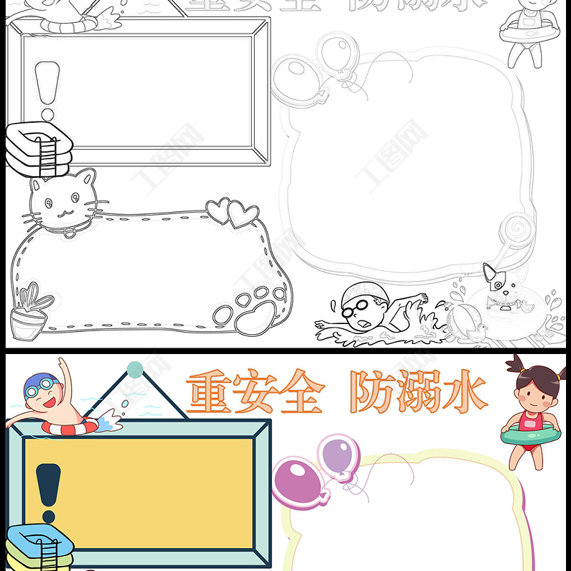 2021重安全防溺水手抄報(bào)安全假期重安全防溺水卡通風(fēng)格小報(bào)模板