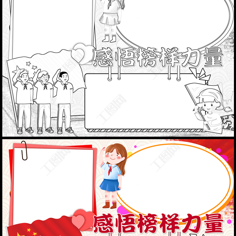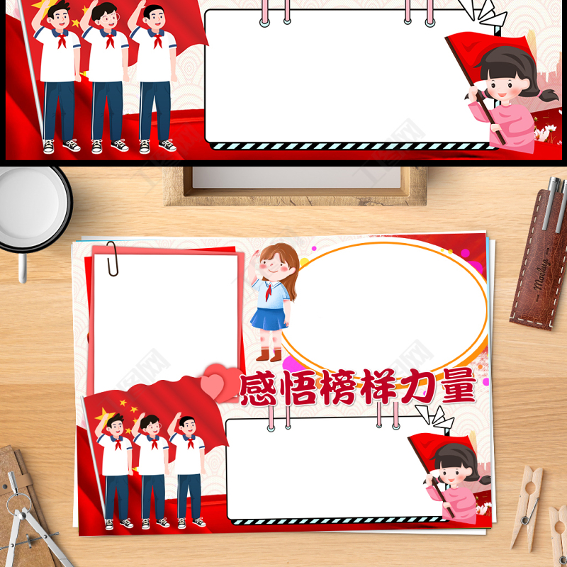 2023感悟榜樣力量做新時代接班人手抄報卡通風(fēng)紅色學(xué)少年榜樣做時代新人word電子小報模板