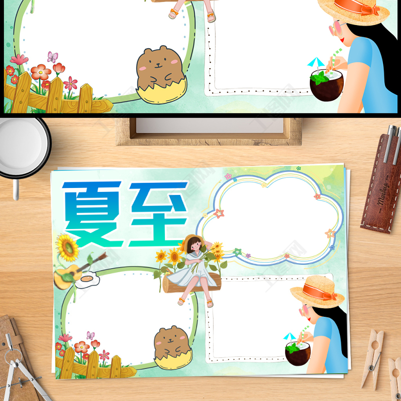 2023夏至手抄報(bào)綠色清新二十四節(jié)氣之夏至知識(shí)宣講電子小報(bào)模板 Array