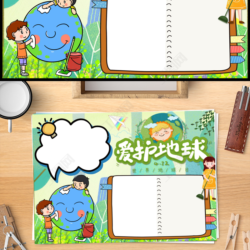 愛護(hù)地球手抄報(bào)綠色清新簡潔世界地球日小報(bào)模板下載 Array