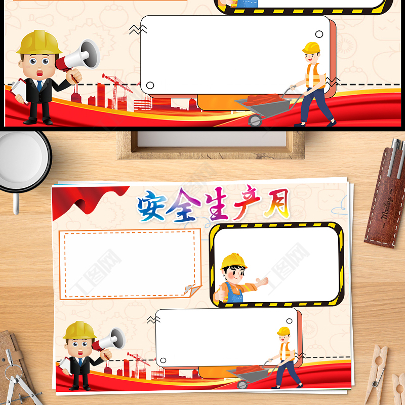 2021安全生產(chǎn)月手抄報卡通安全生產(chǎn)月工程作業(yè)安全帽工地小報模板