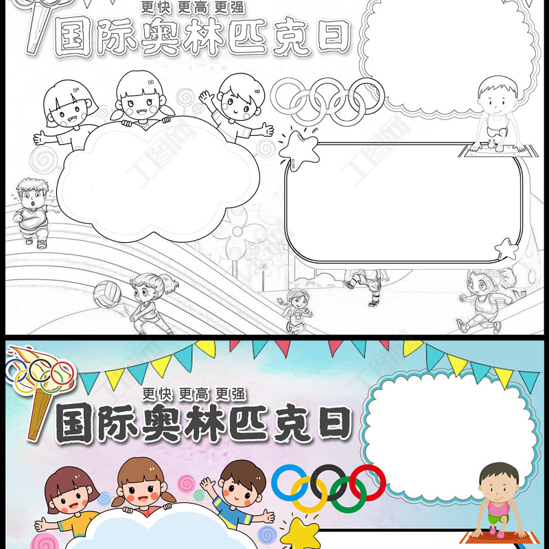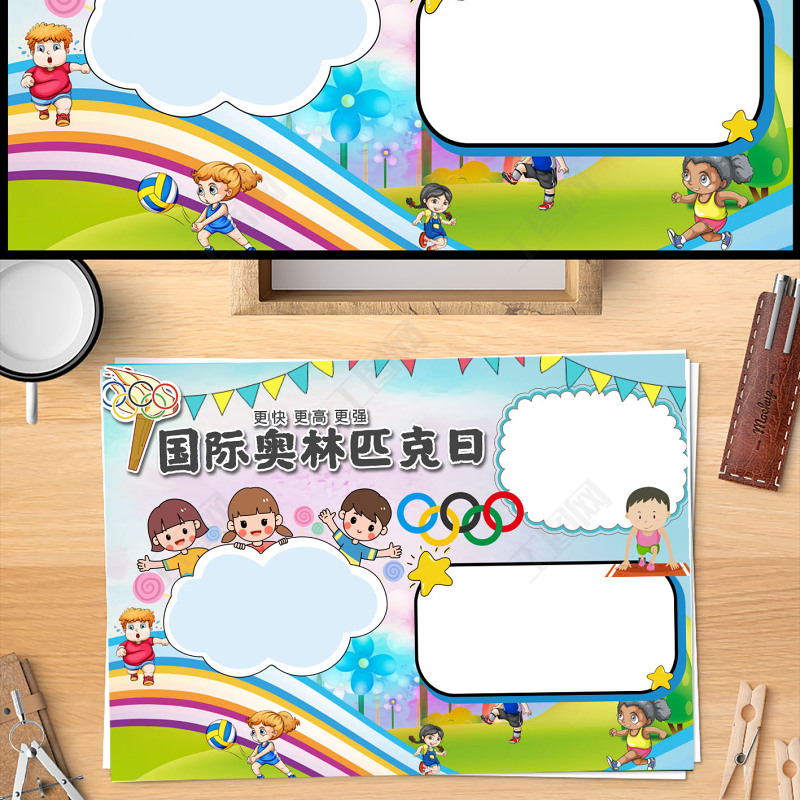 國際奧林匹克日手抄報卡通背景運動競技小報模板下載 Array