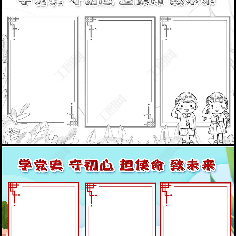 工圖網(wǎng)提供2021學(xué)黨史守初心擔(dān)使命致未來手抄報清新卡通學(xué)黨史迎百年小報電子模板供會員免費下載。更多精彩黨課PPT素材,盡在工圖網(wǎng)。