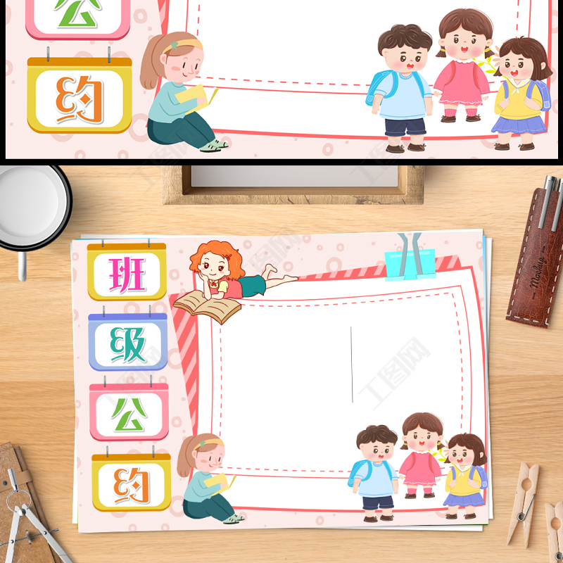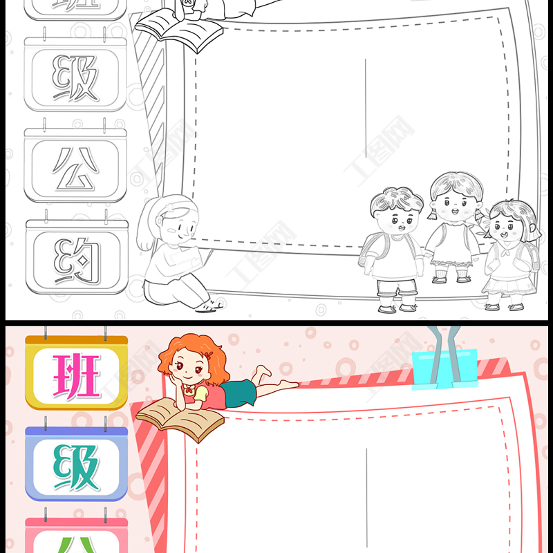 2023班級(jí)公約手抄報(bào)簡(jiǎn)約童趣遵守班紀(jì)校規(guī)word電子小報(bào)模板 Array