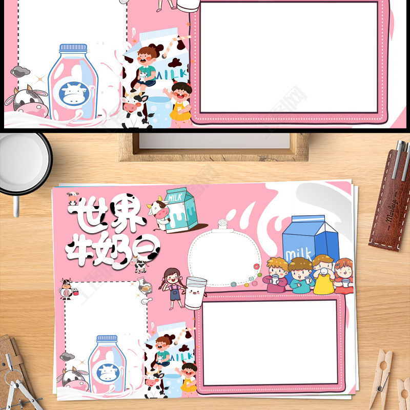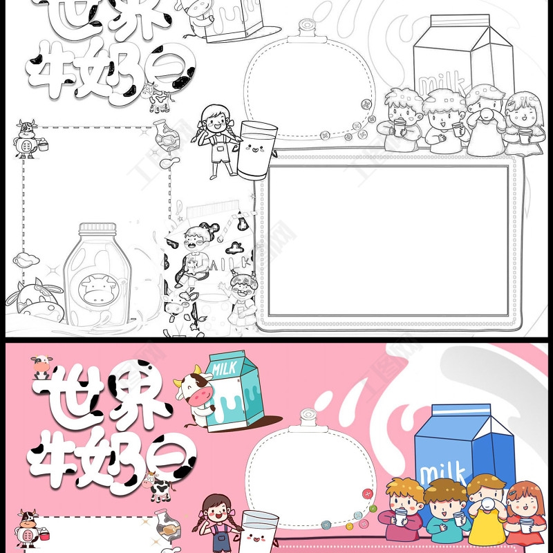 六月一日世界牛奶日手抄報粉色卡通節(jié)日介紹小報模板下載