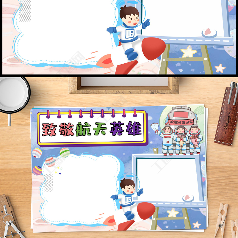 致敬航天英雄手抄報(bào)太空插畫風(fēng)航天精神小報(bào)模板下載 Array