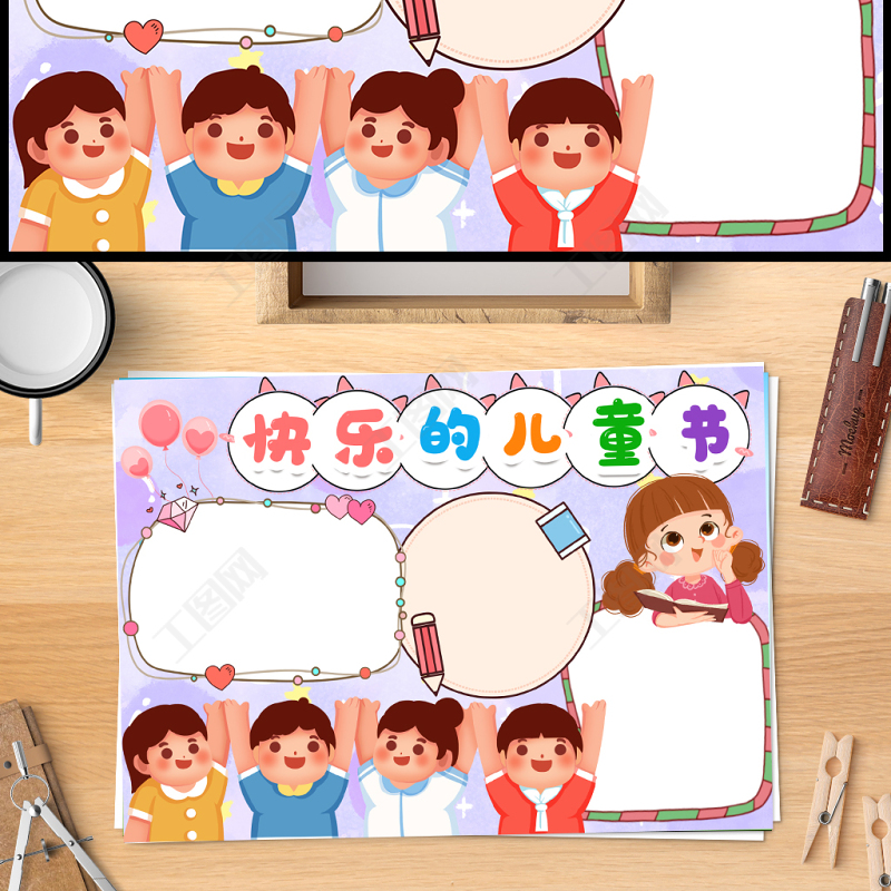2023快樂的兒童節(jié)快樂手抄報(bào)紫色夢幻卡通風(fēng)61兒童節(jié)介紹電子小報(bào)模板