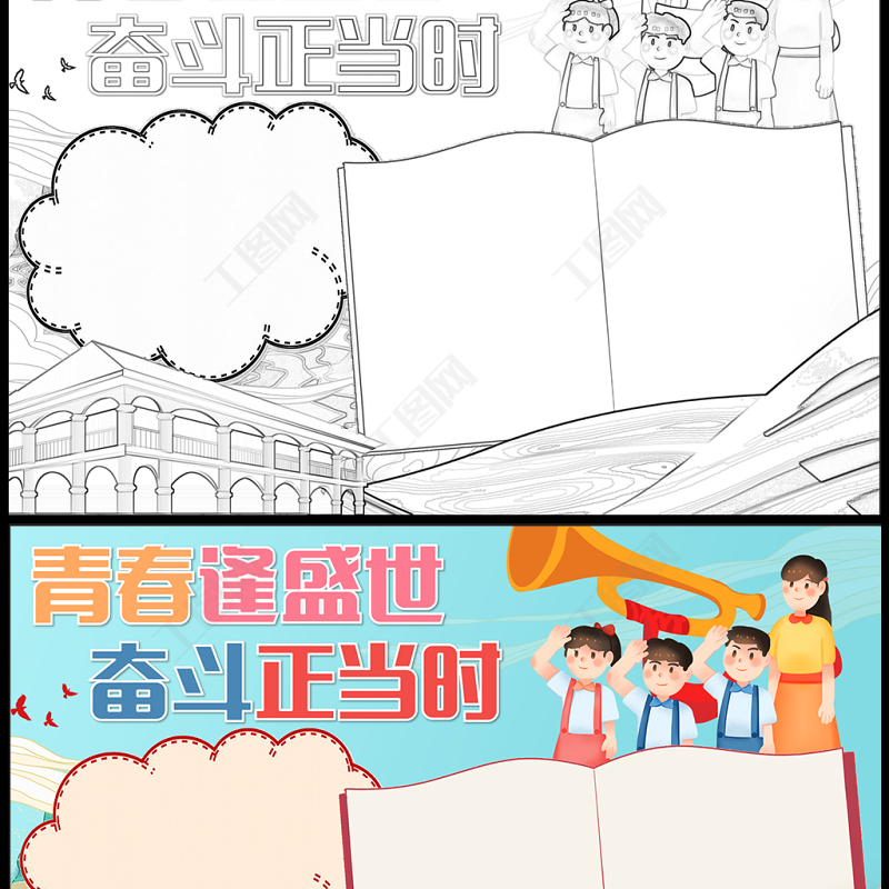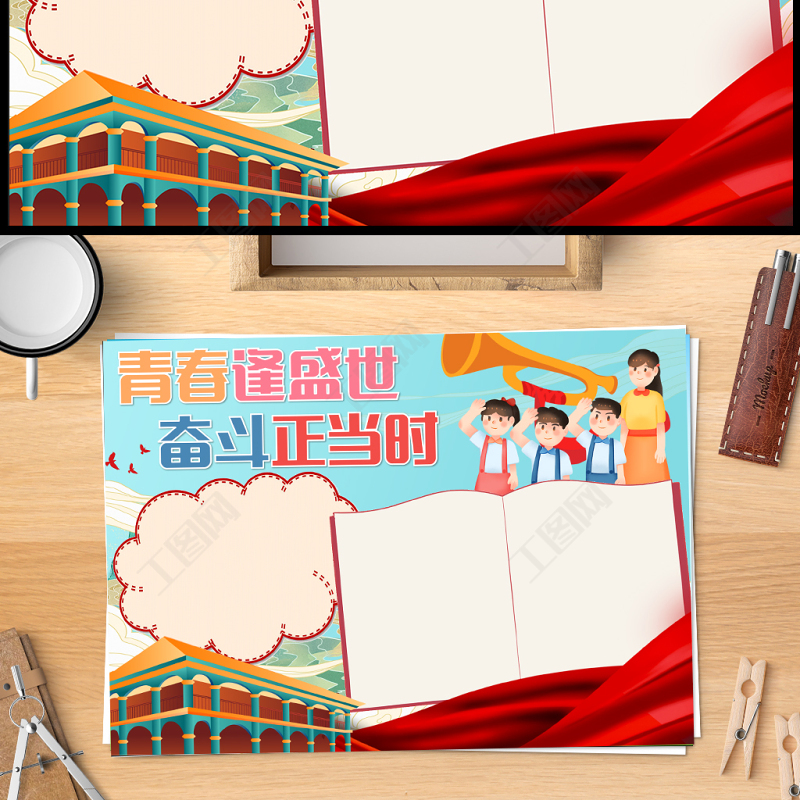 2023青春逢盛世奮斗正當時手抄報可愛風創(chuàng)意國旗下的講話word電子小報模板包含