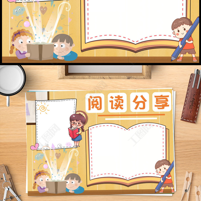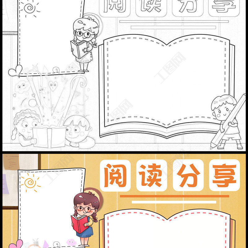 2022閱讀分享手抄報(bào)簡約可愛一起分享閱讀快樂小報(bào)模板下載 Array