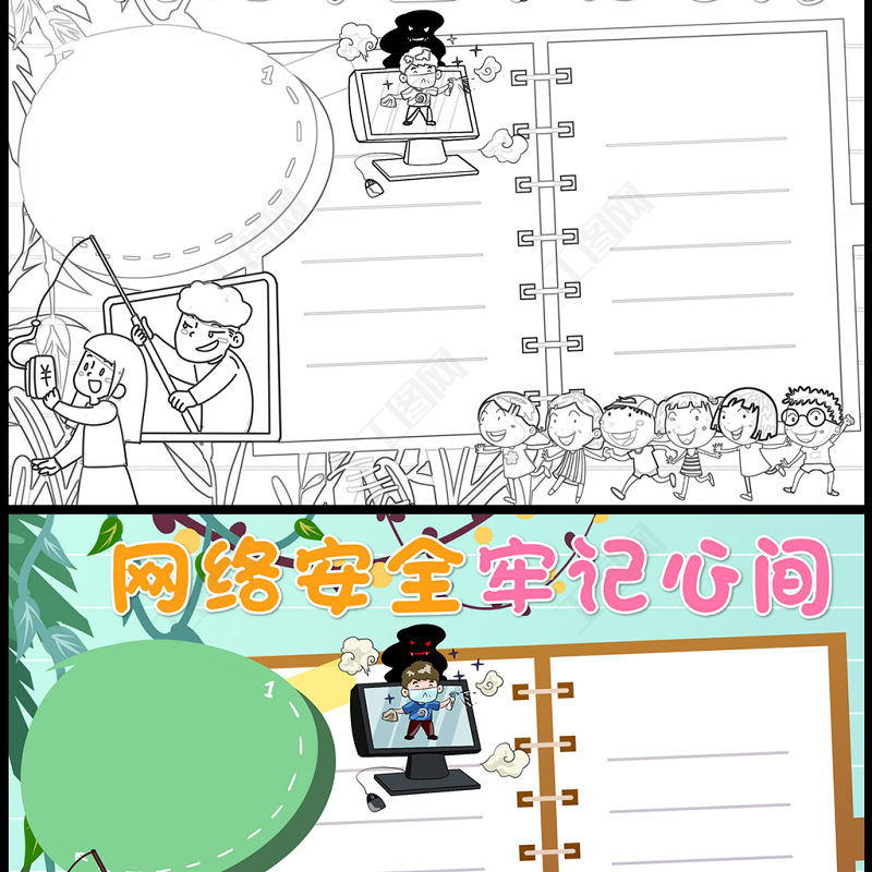2023網(wǎng)絡(luò)安全伴我行手抄報童趣可愛學生文明上網(wǎng)網(wǎng)絡(luò)安全word電子小報模板包含