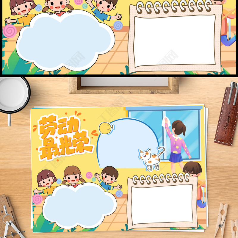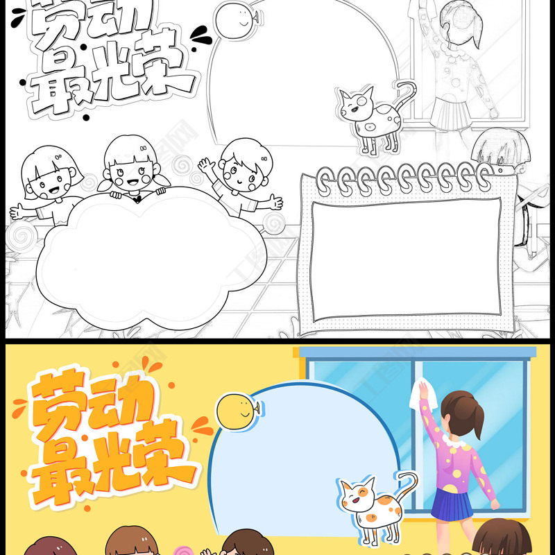 我勞動我快樂黃色卡通勞動最光榮勞動節(jié)小報模板下載 Array