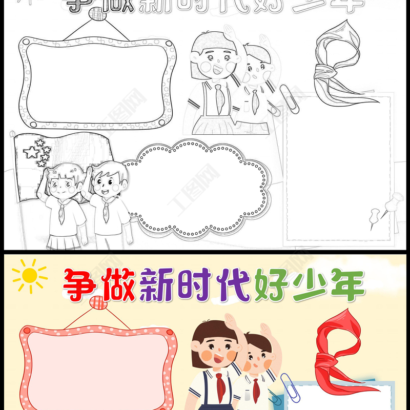 爭做新時代好少年手抄報童趣卡通中國少年先鋒隊小報模板下載 Array