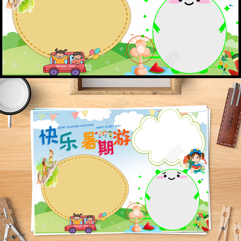 2021 快樂暑假游 手抄報(bào) 卡通風(fēng)格 中小學(xué)生 暑假生活 小報(bào)模板 Array