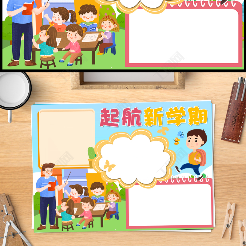 2023起航新學(xué)期手抄報兒童插畫風(fēng)新學(xué)期開學(xué)季word電子小報模板 Array