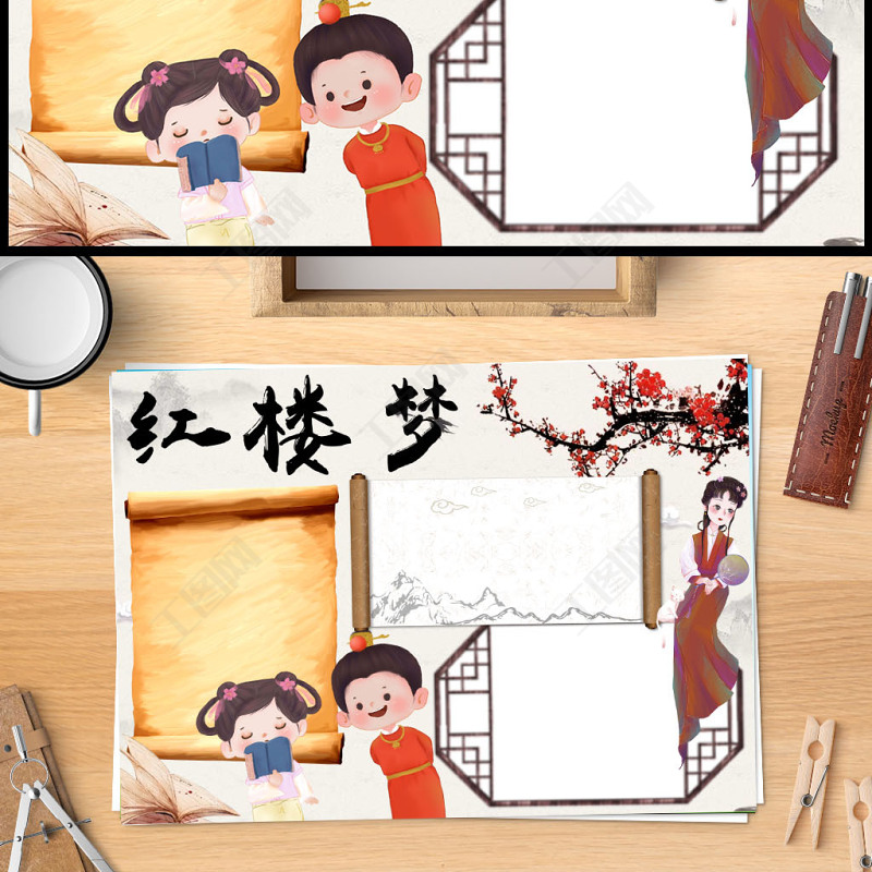 2023紅樓夢手抄報創(chuàng)意國風(fēng)中國四大名著紅樓夢簡介人物介紹電子小報模板 Array