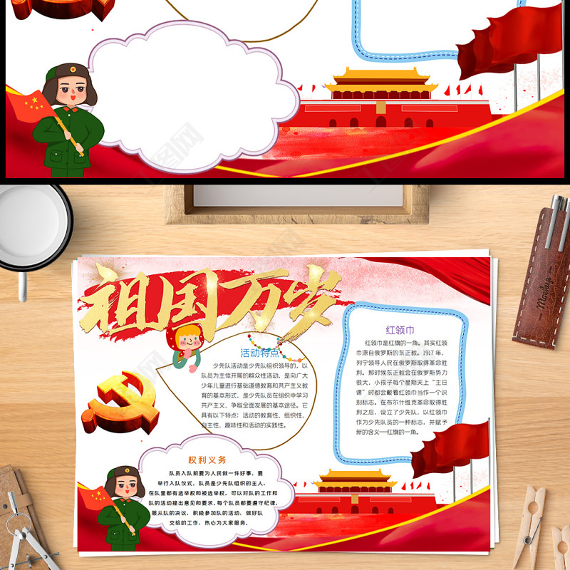 2021祖國萬歲手抄報暖色卡通我和我的祖國盛世華誕72載小報模板 Array