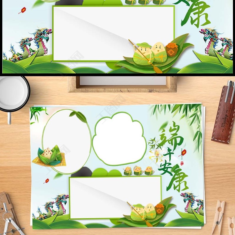 端午節(jié)小報綠色可愛端午安康小報模板下載 Array
