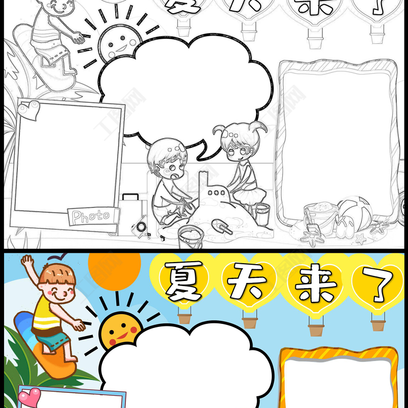 夏天來了手抄報清新卡通立夏簡介小報模板下載 Array