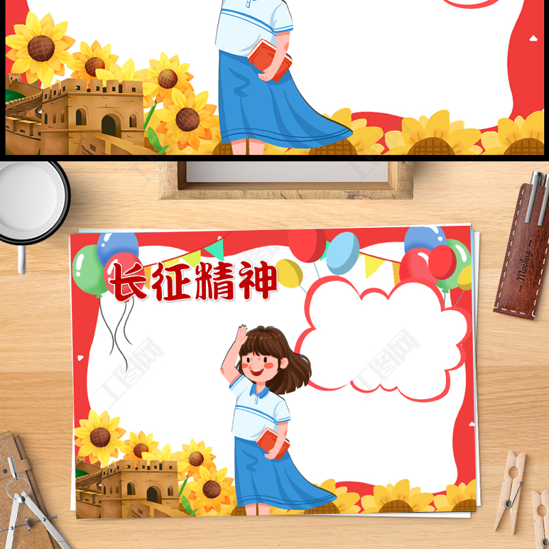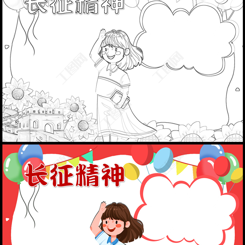 2023長征精神手抄報童趣彩色長征精神的意義與內涵介紹word電子小報模板 Array