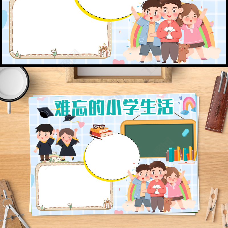 小學畢業(yè)手抄報精美卡通難忘的小學生活再見母校電子小報模板