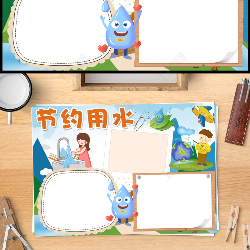 2023節(jié)約用水從我做起手抄報(bào)淡藍(lán)清新保護(hù)水資源節(jié)約用水word電子小報(bào)模板 Array