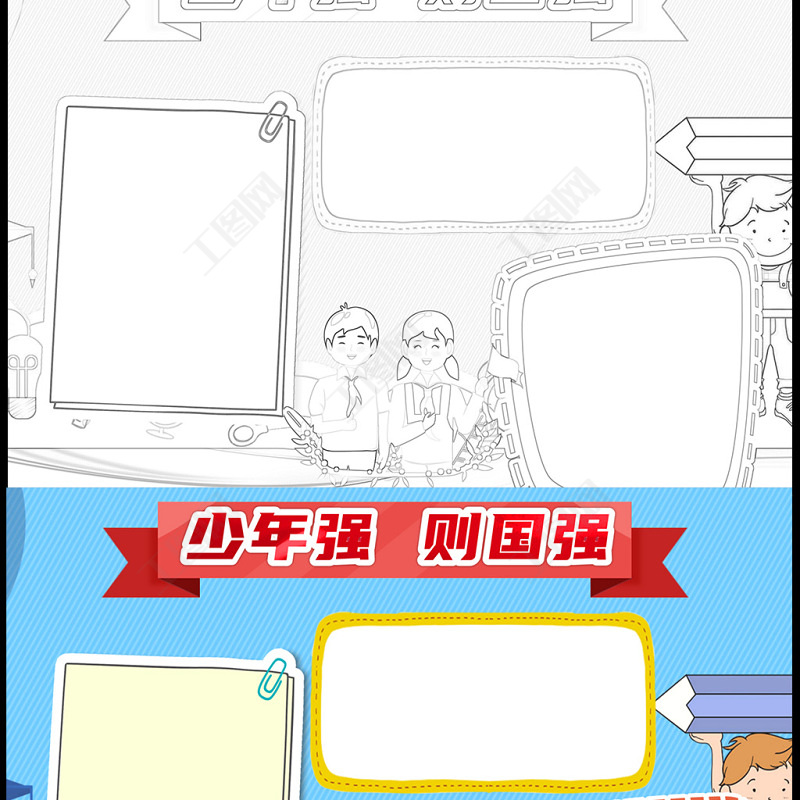 2021少年強(qiáng)則國(guó)強(qiáng)手抄報(bào)黨政風(fēng)簡(jiǎn)約紅色手抄報(bào)含線稿小報(bào)模板 Array