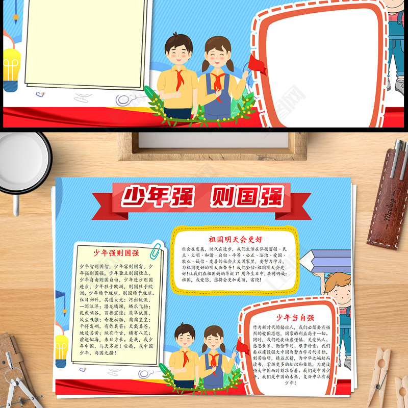 2021少年強(qiáng)則國(guó)強(qiáng)手抄報(bào)黨政風(fēng)簡(jiǎn)約紅色手抄報(bào)含線稿小報(bào)模板