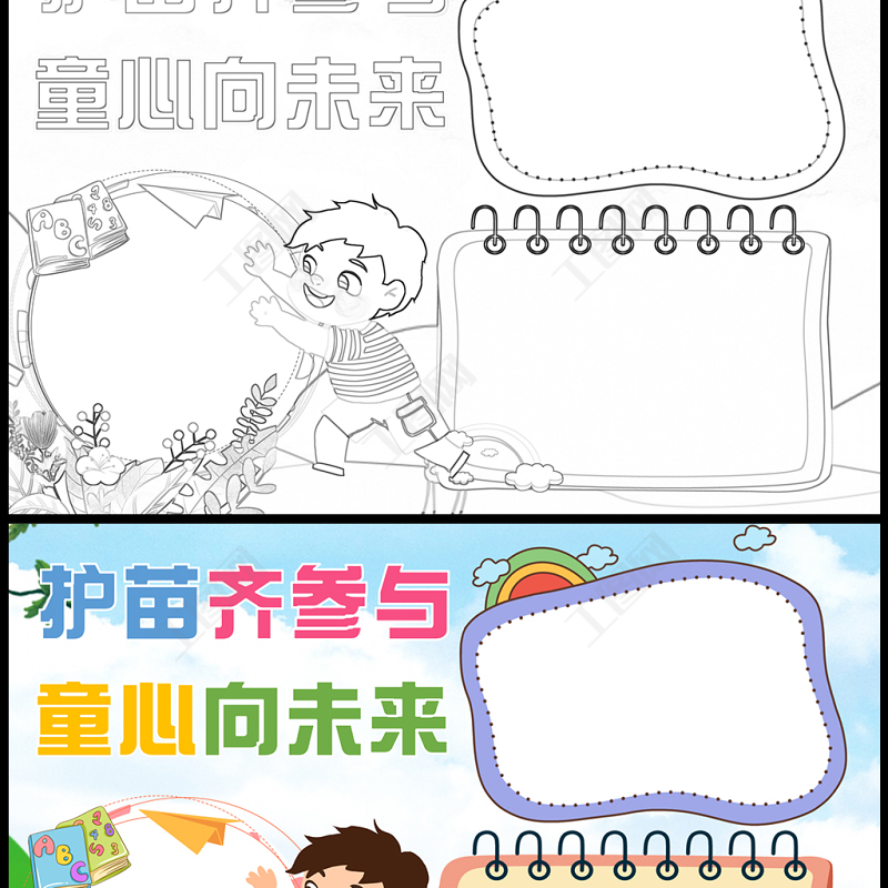 2023護(hù)苗齊參與童心向未來手抄報卡通簡約護(hù)苗行動word電子小報模板 Array